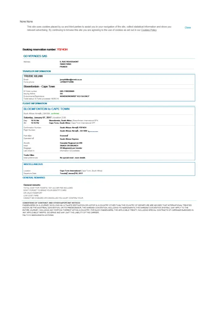 I made a flight booking though edreams for the 7 Jan 2017, Bloem to Cape, South African Airways YSF4OH. Due to unseen circumstances I had to cancel. I spent a total of an hour and twenty min on the phone holding on for assistance, yes 1h20 min. After explaining the situation the person told me that SAL does not refund cancel bookings and if he cancels reservation there is additional R400.00, although there will be no refund. How is this possible, this is not an international flight, it is not a 24 hour cancellation. I can understand if the edreams are not prepared to pay back there surcharge for doing nothing, but to have an cancelled flight money payed back is unacceptable. To all public searching for a better deal on flight, Please do not use eDreams travel agency. SAL users make sure you know all the restrictions of a booking