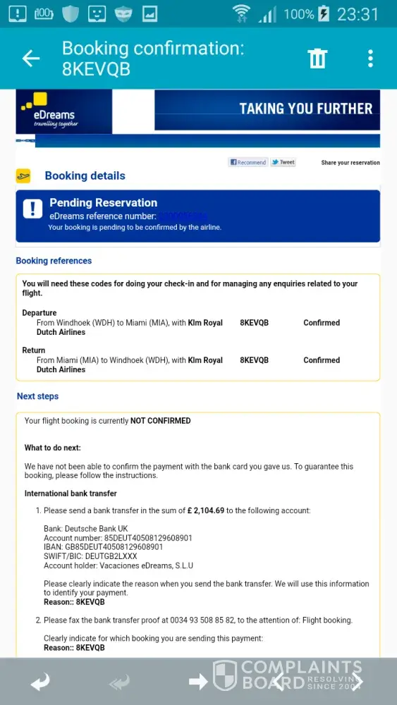 flight booking scam. edreams booking reference number: [protected]