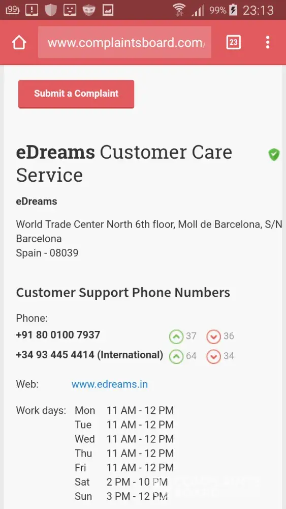 I have been trying to call its Spain headquarters for so many times but in vain. Then I tried to its london number and after many trial and lengthy waiting time, I finally reached a staff Miss Rynjah. She promised her manager would call back in half an hour. We did receive a phone call in about 10 mins but it only rang for 2 seconds! How could I possibly pick up? I do believe eDreams' staff just pretended they have called and then cut the line. It's not genuinely returning client's request!