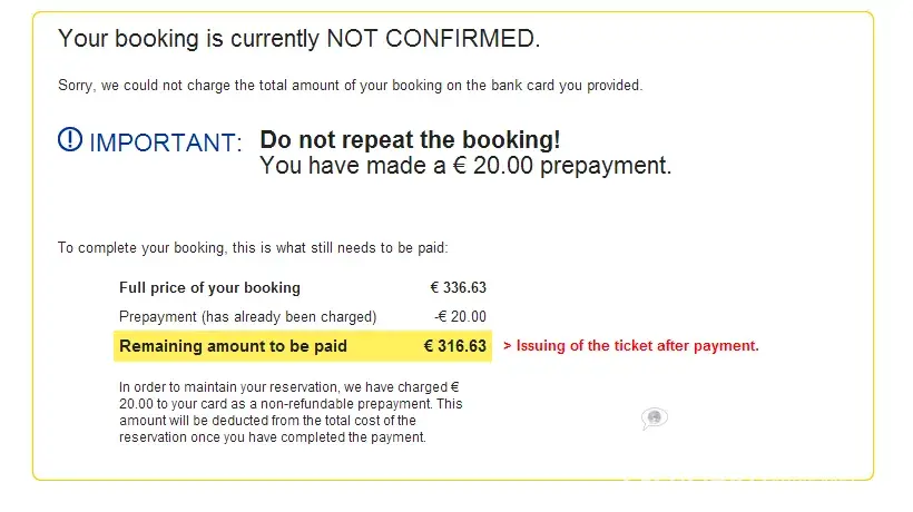 Secondly, I tried to buy the tickets at Edreams again but couldn't because the payment was still pending.