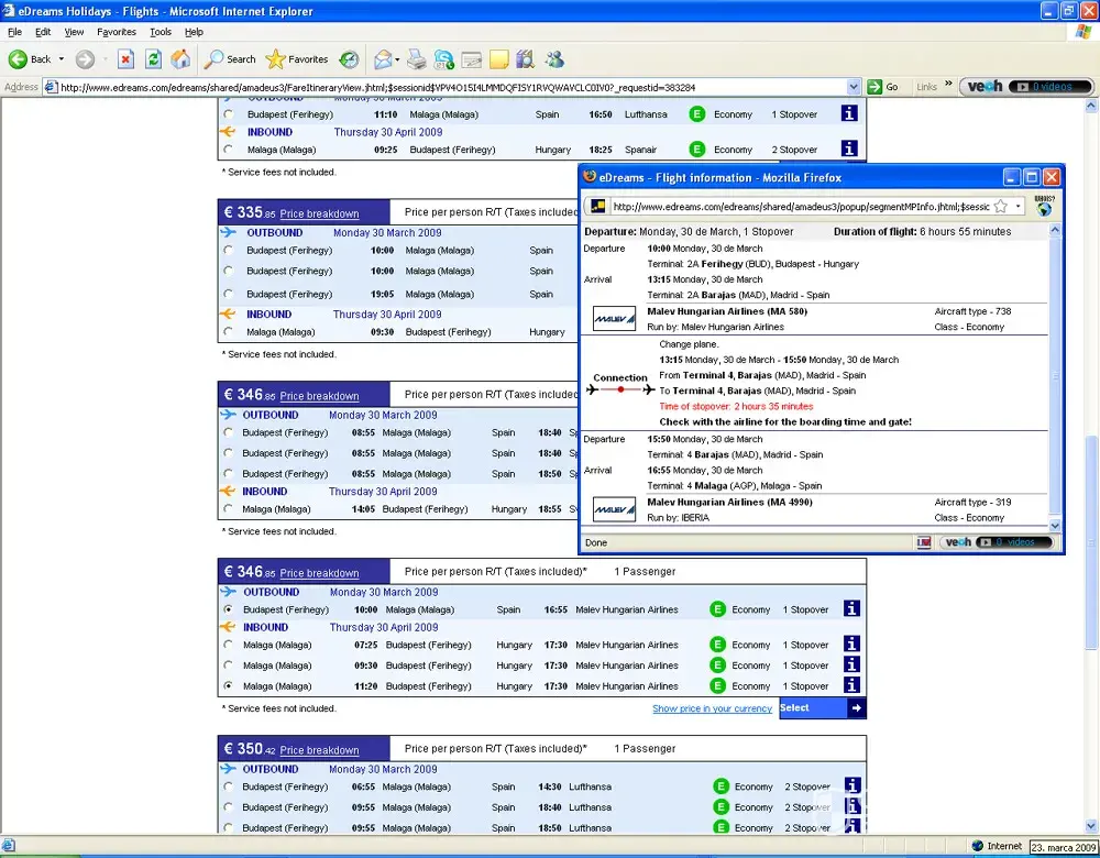 We have also experienced awful service from eDreams. 2 days ago, I tried to book a flight for my mother who was intending to travel from Budapest to Malaga. After checking the various options and availabilities on eDreams' site, I went ahead and booked the flight and eDreams deducted money from my account. Within one hour, I received an email from eDream...