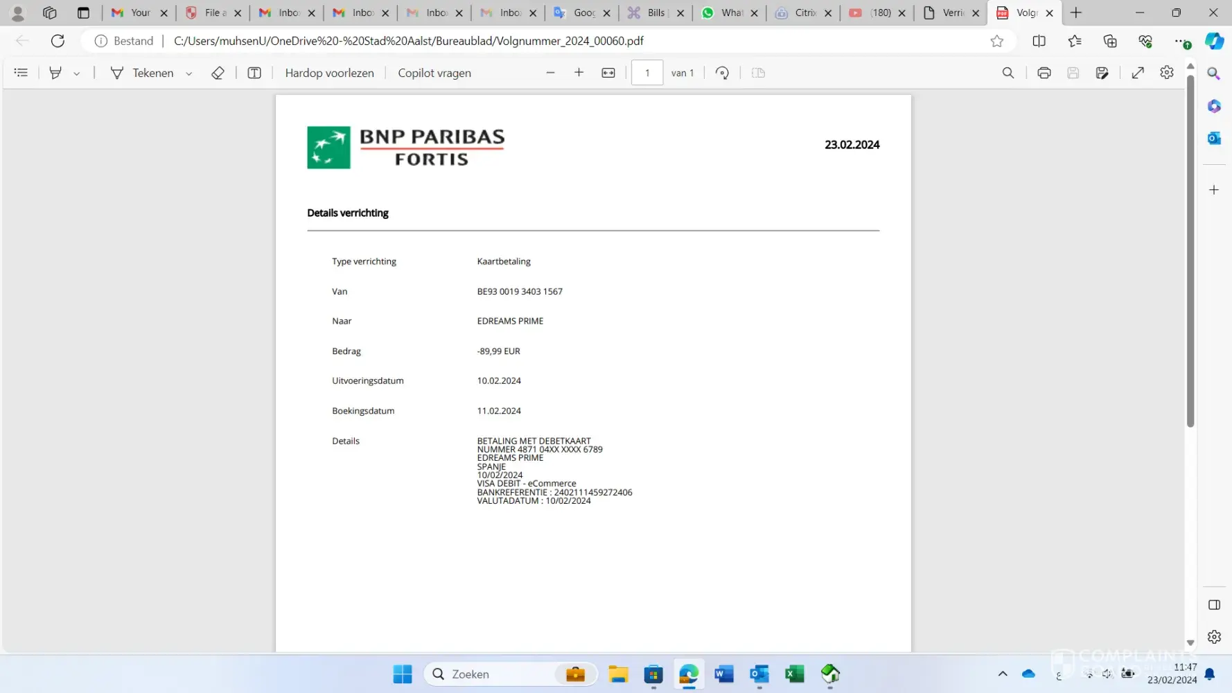 On February 10, an amount of 89.99 euros was debited from my bank account. I did not make any ticket purchases on this date.