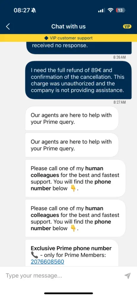 I was charged 89€ by eDreams for a Prime Membership renewal that I did NOT authorize.