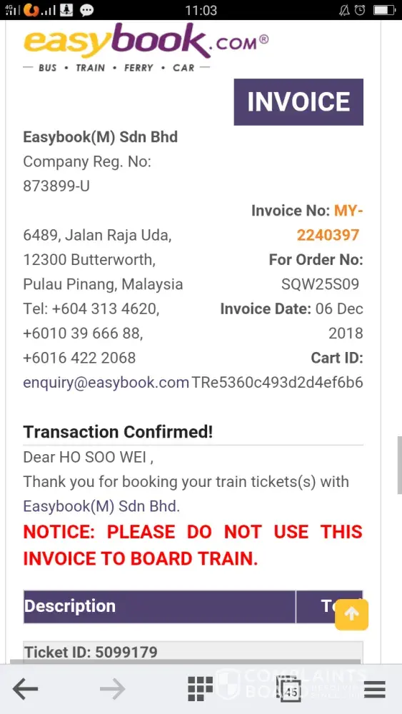 Di sini, email ini kami pun cc bagi Transport Minister, Antony Loke. Harap YB boleh mengenalpasti masalah yang berlaku di KTM juga. Kali ini adalah kali pertama nak bawa anak nak cuba naik train melancong dengan berbesar hati, tetapi kecewa semua orang akhirnya. Apa akan berlaku jika sekarang adalah pelancong dari luar negara? Mereka nak pergi mana buat aduan? Memang kecewa hati terhadap KTM MALAYSIA ini.