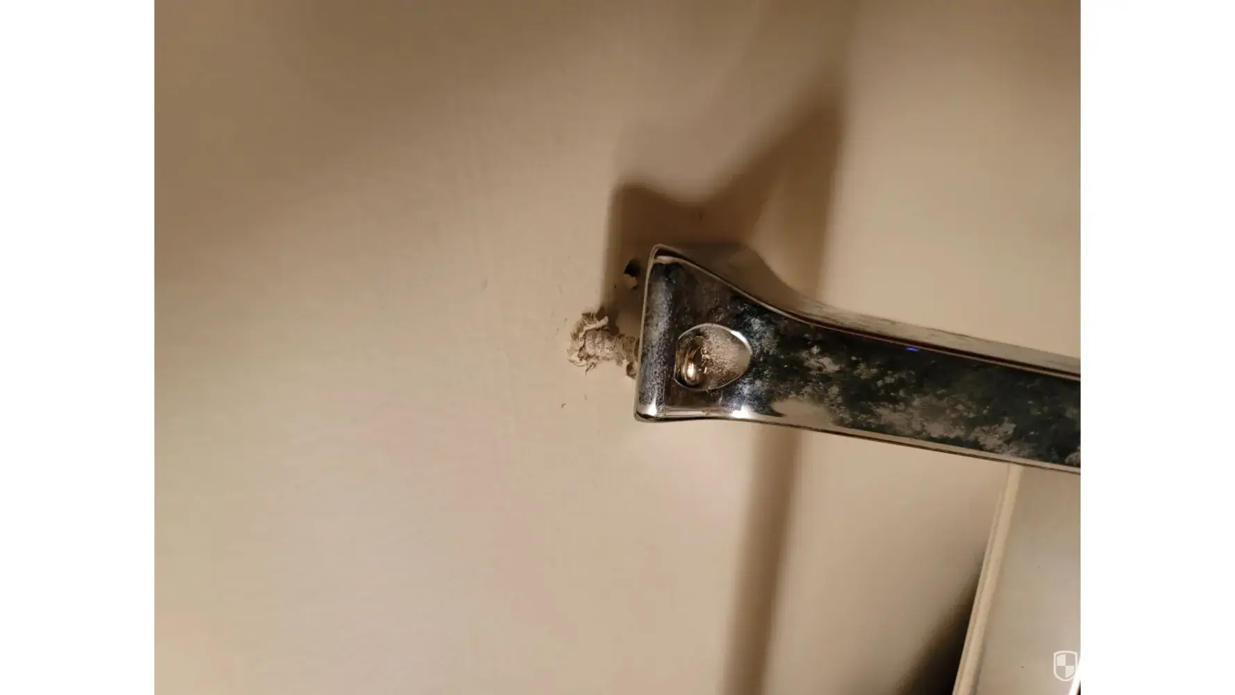 - Our kitchen cabinets have multiple chips and cracks, and one corner was charred black, like it had caught on fire : (The walls were dirty too, some of our closet doors and pantry door were broken. The bathroom exhaust fan was falling out of it's socket in the ceiling...