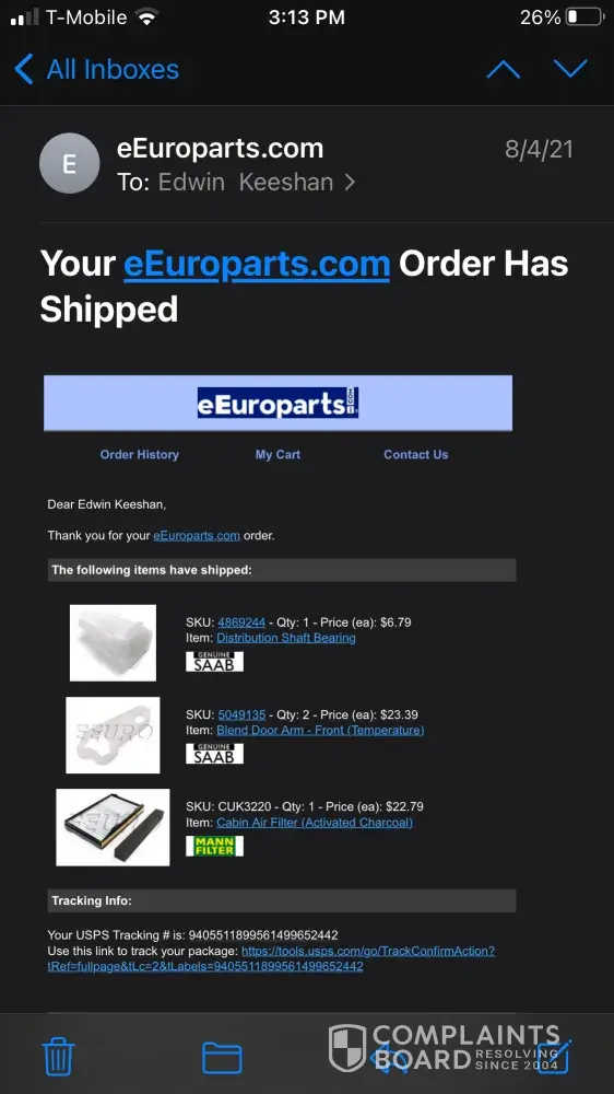 eEuroparts.com / OnlineAutoParts.com complaints: history and resolution overview