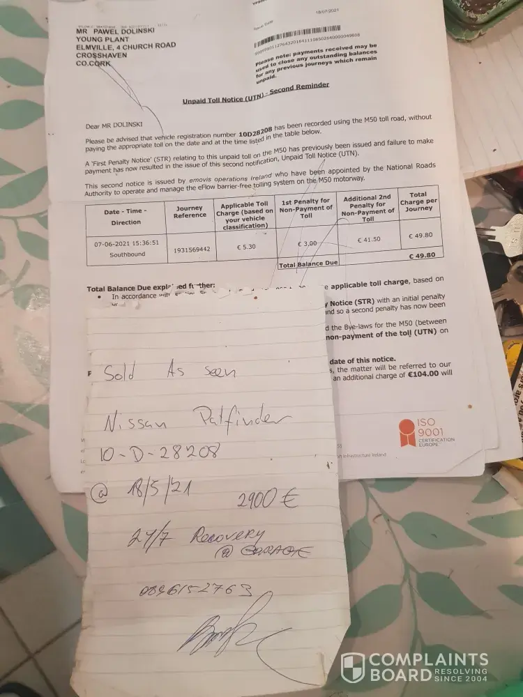 I recently purchased a new van and there was a mix up in the toll payment between me and the previous owner.