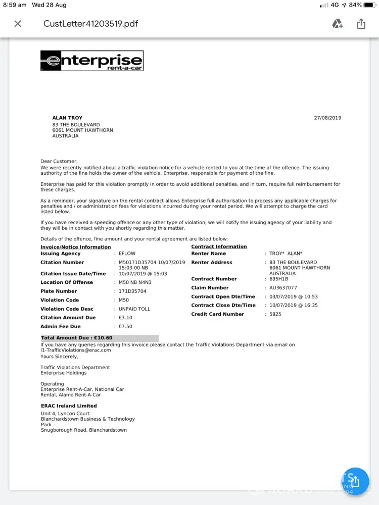 Please rescind this notice and advise Enterprise car rentals accordingly.