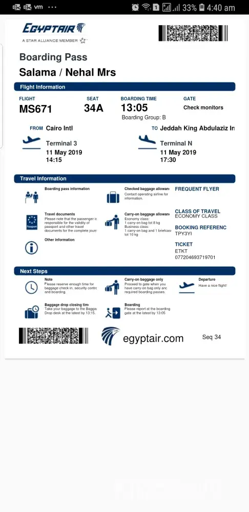 Today I had I planned flight on EgyptAir from Cairo to Jeddah at 2:15 pm.