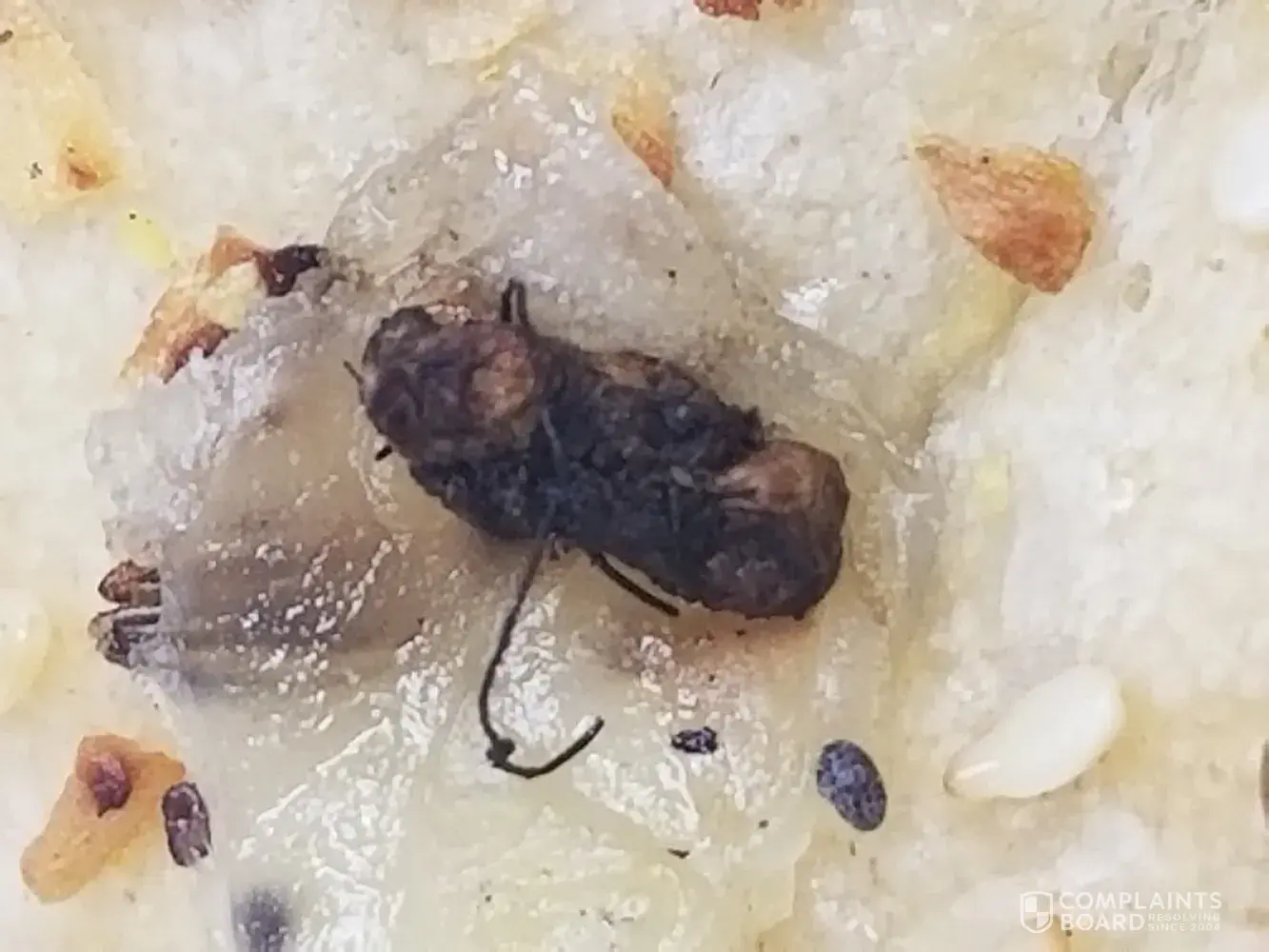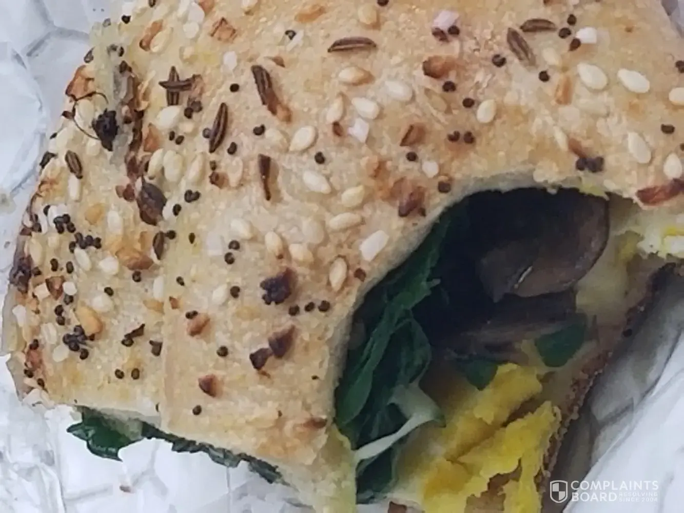 Today 6/28/17, this morning, I stopped by at the Einstein Bagels for a coffee and my usual sandwich Spinach, mushroom and swiss on an everything bagel. I came to my office to have my breakfast, I had the first half and when I bit into the second I noticed something that was sticking out on top of my bagel (looks like a bug with a hair on it) I immediately started throwing up.