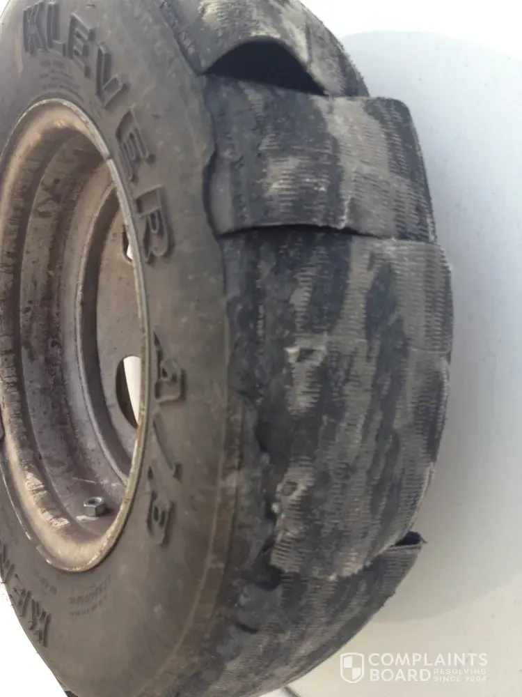 See photo of tire with hardly any tread! If at all. This was a crummy tire. "Made in China".