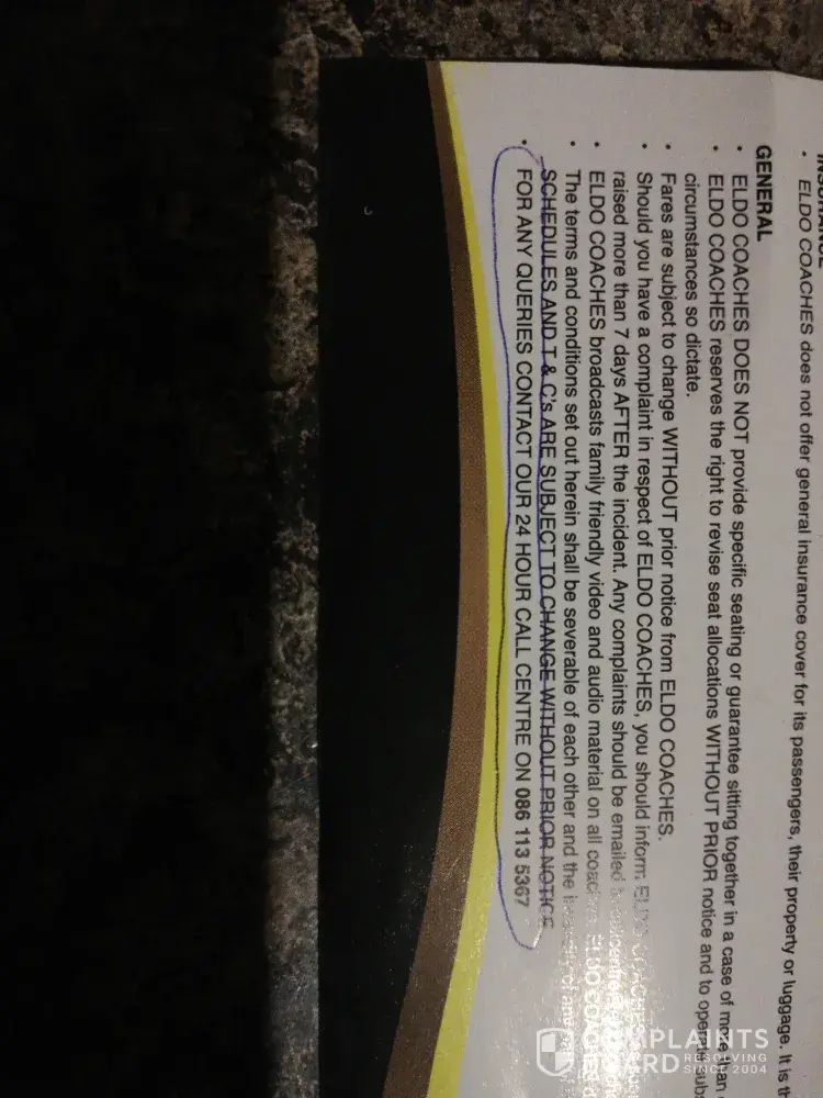 Its not the first time that this has happened, eldo coaches are not looking after their buses properly. If they not having a break down, its waiting for another bus, or they over booked. Its unreal! We think that they are nice buses and we always use them, but if they are giving us these kind of problems, we should all boycott them! Last year I travelled with them and we had to go in a bus that was extremely disgusting, not a luxury bus because their bus broke down! Why cant they maintain their buses and keep them in good condition to avoid all problems! I appeal to eldo coaches to pleeaase, service all your buses before going on a journey...