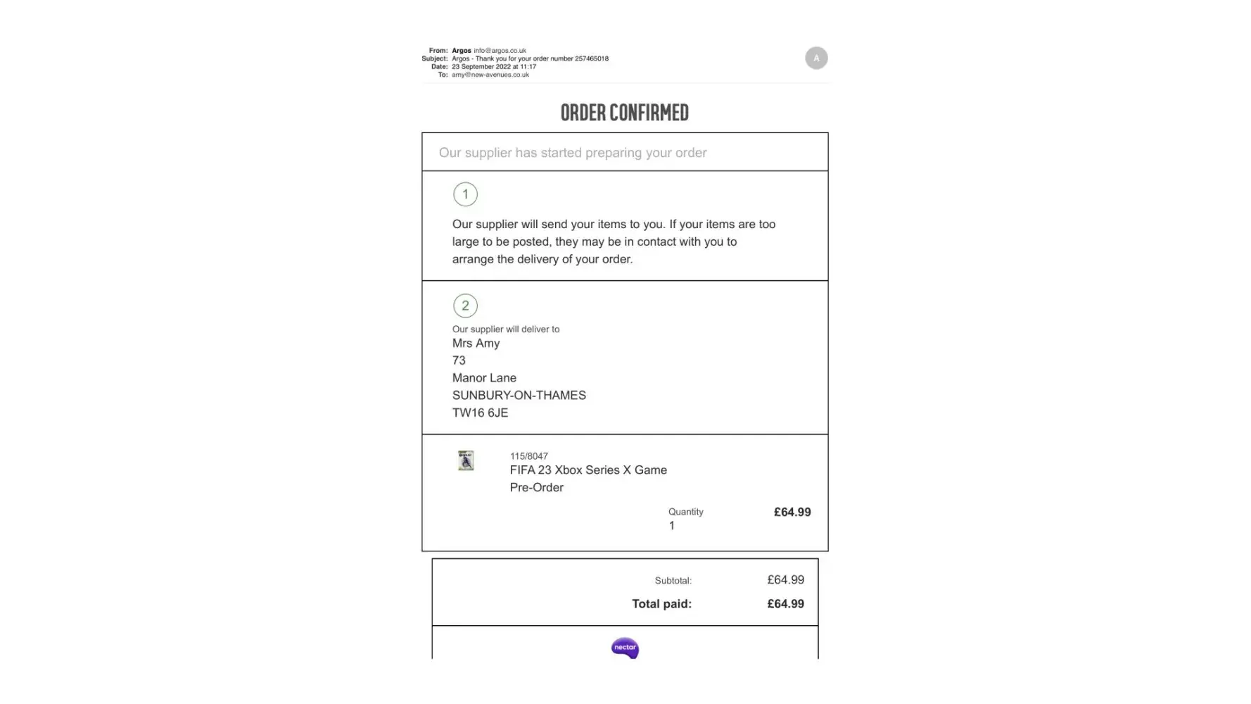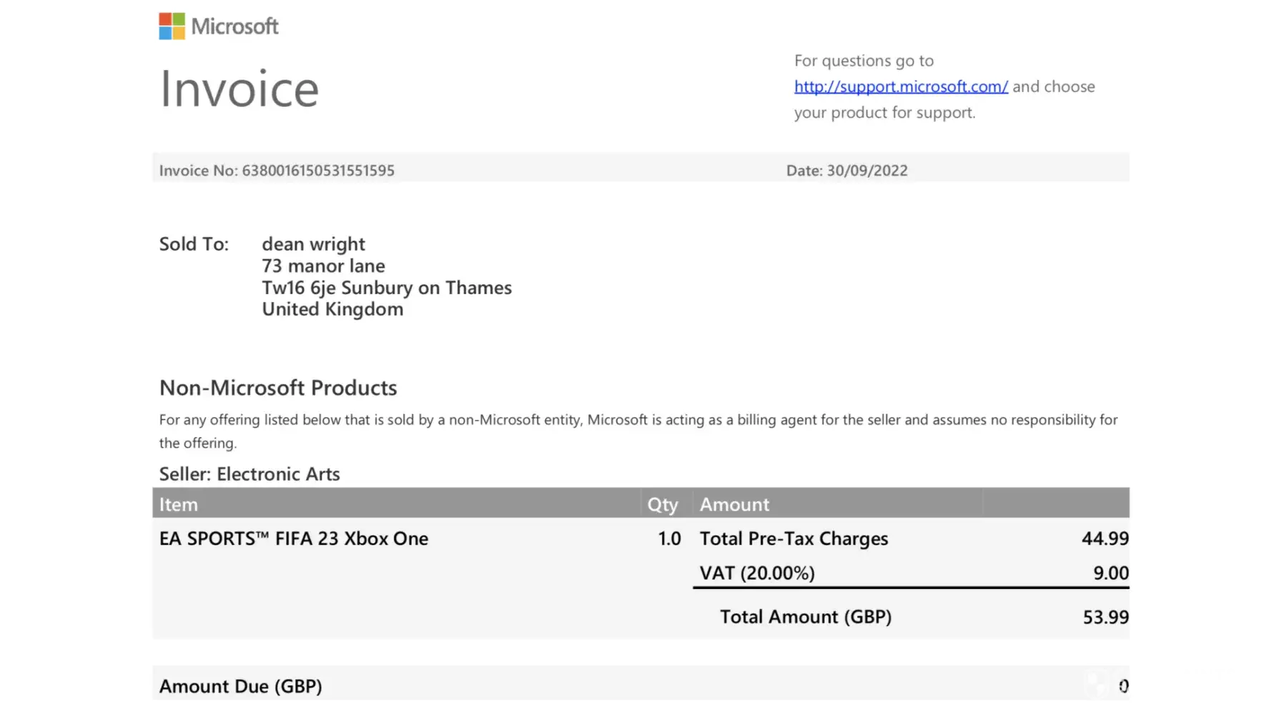 I am writing to you as my son purchased Fifa 23 for his Xbox X at £64.99 from Argos on 23rd September.
