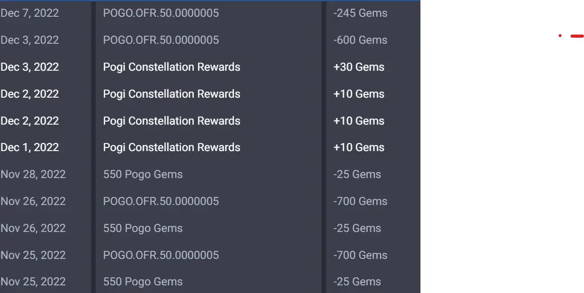 on 26/11/22 they took money from me for 600+100 extra gems on a promo on pogo...i didn't get the gems...on the 28/11/22 i again paid for 600+100 gems for the same promo and did get them then they promptly were taken off...