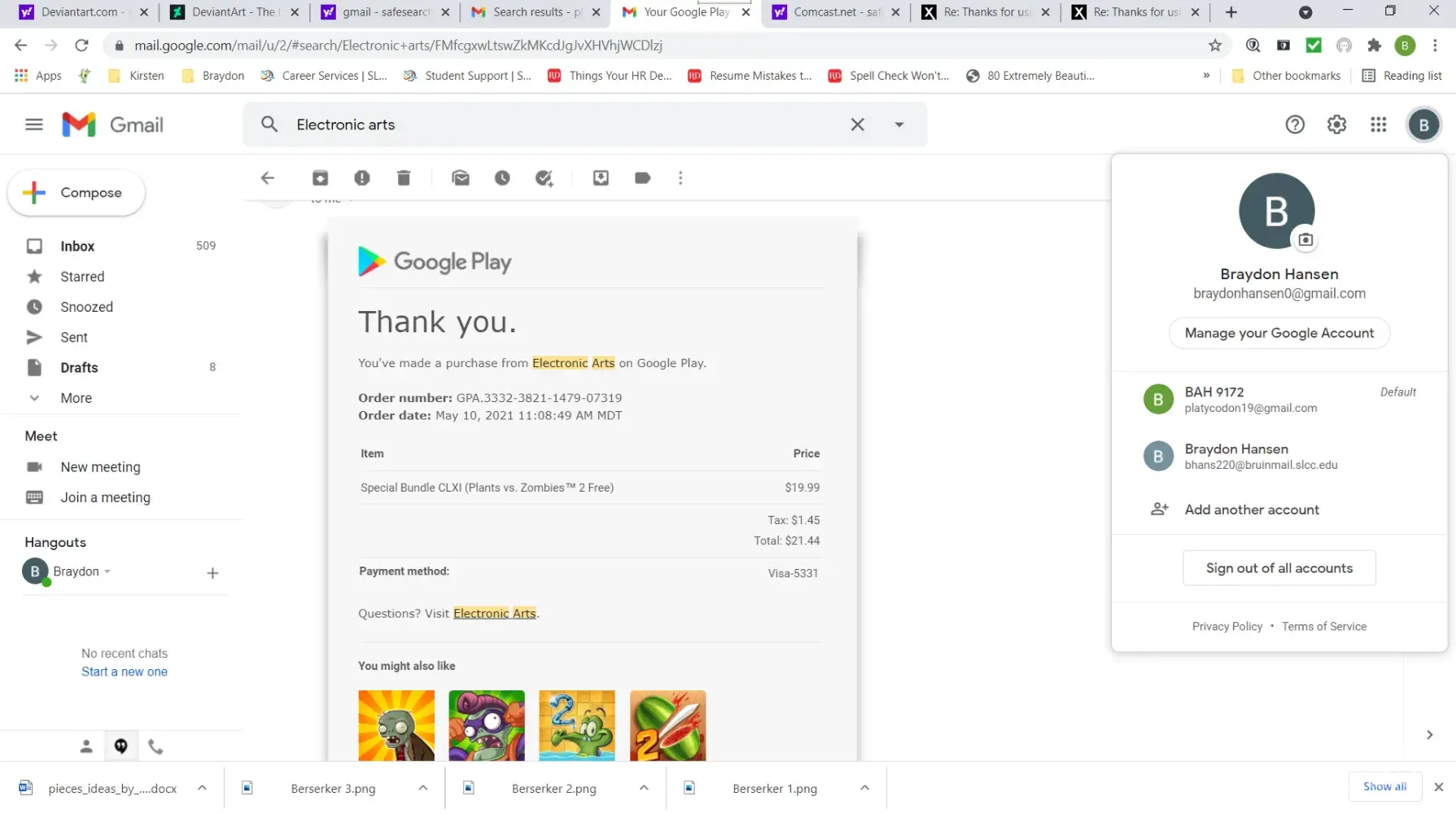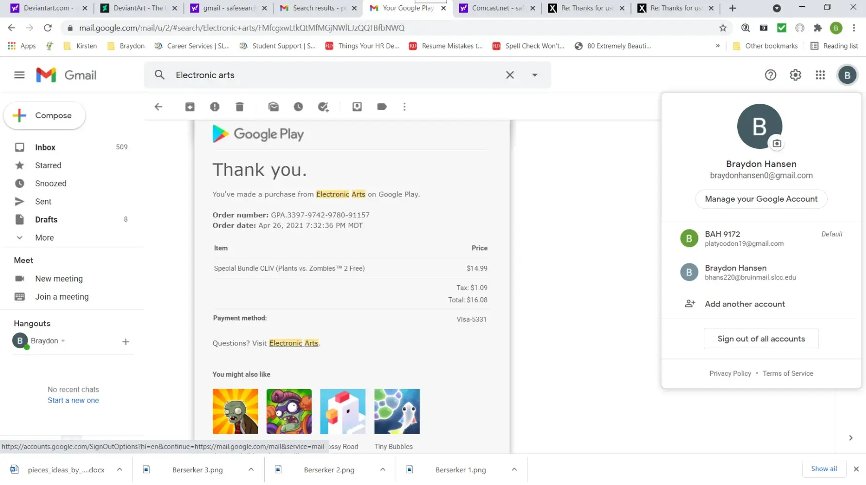 Hi! I have recently purchased a few items from the Plants vs. Zombies 2 in-game store. I have not received what I paid for. I have contacted support, and given them *all* requested documents, and I have even made sure the format matched the examples given on their website. However, Support only contacts me to tell me things are wrong/missing. As I stated above, I have given them *all* requested documents, but they continue to find reasons to deny me my purchase. I will attach my documents below. They include-