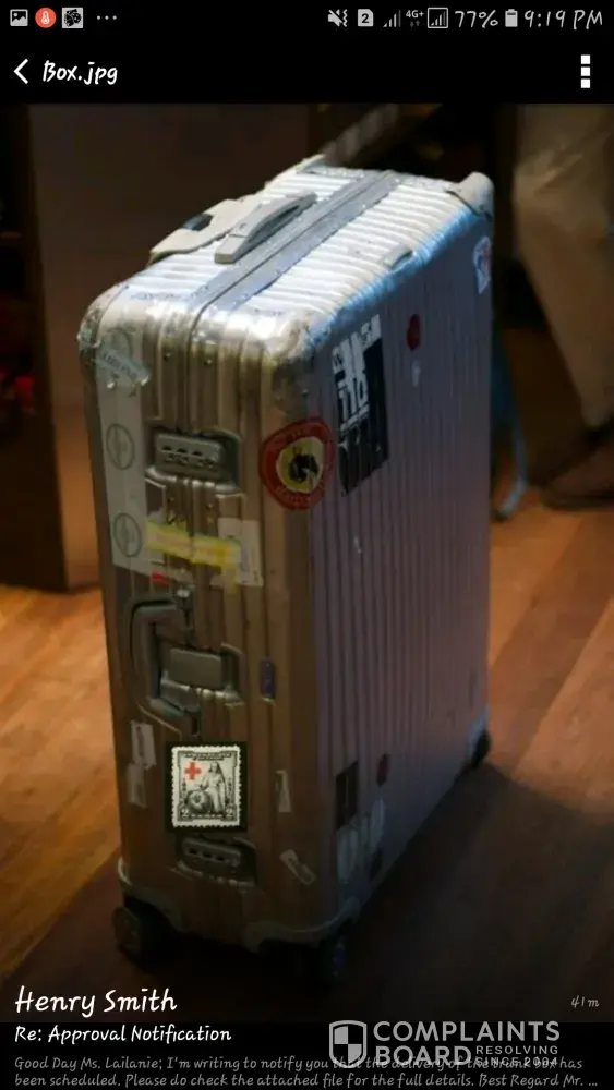 total of RM4, 400 (Four thousand four hundred Malaysia Ringgit) has been charge. In acknowledgment to this email, Account details shall be provided to you for the payment as stated above for the release of your package). Thank you, as i hope i have made myself clear to you by this notice as directed by the management.