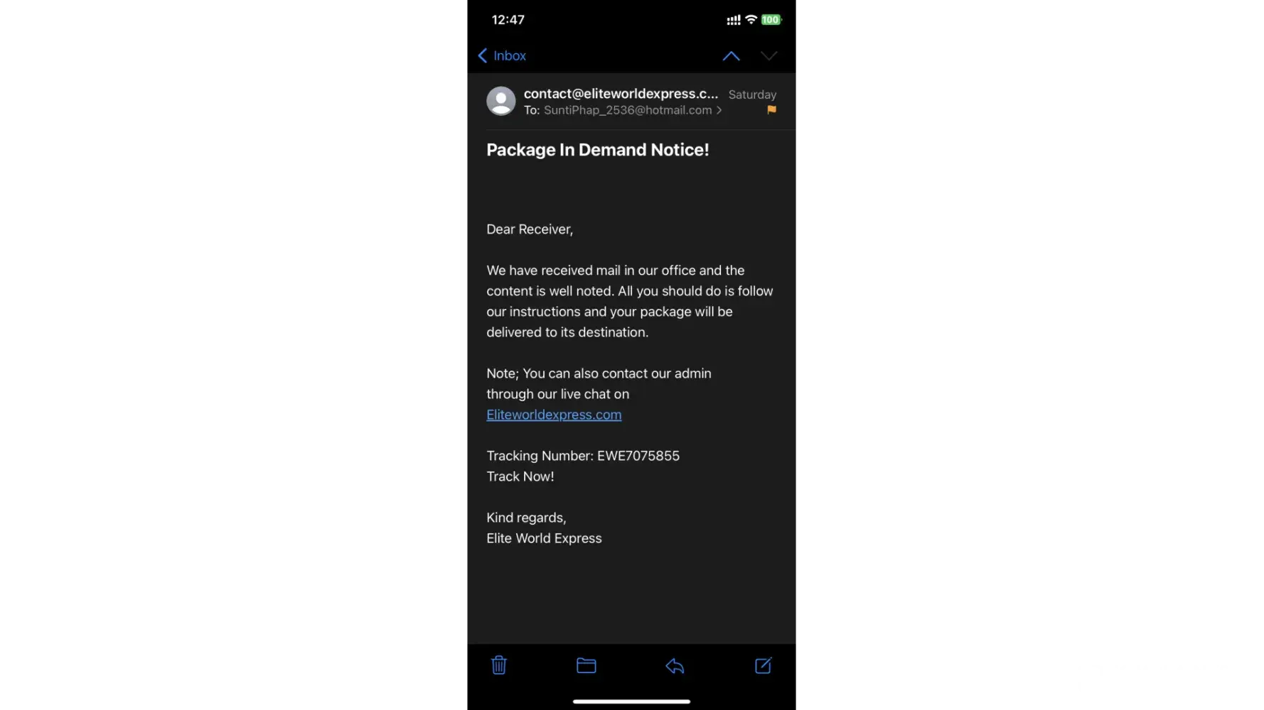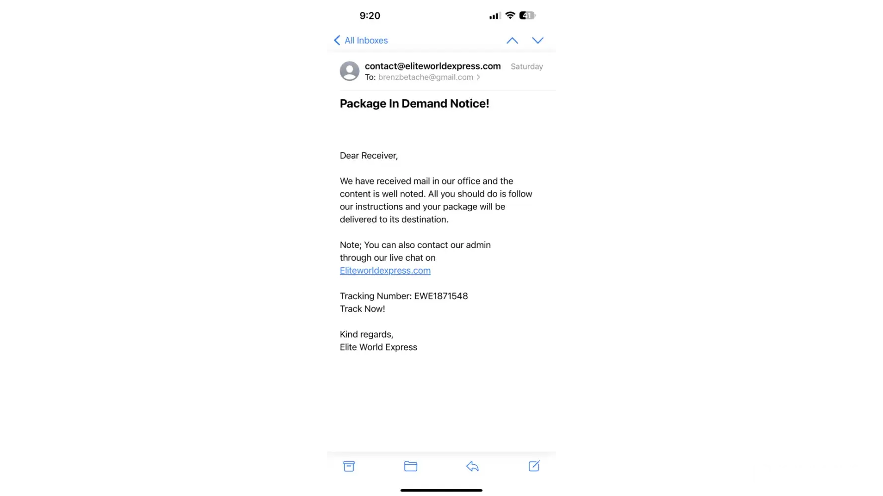 Hey can i contact you in telegram because that name of the package was have a same surname which is watson same address and same format of his gmail account. And that Elite Courier was a same format so that I was thinking that if we encountered the same person too.