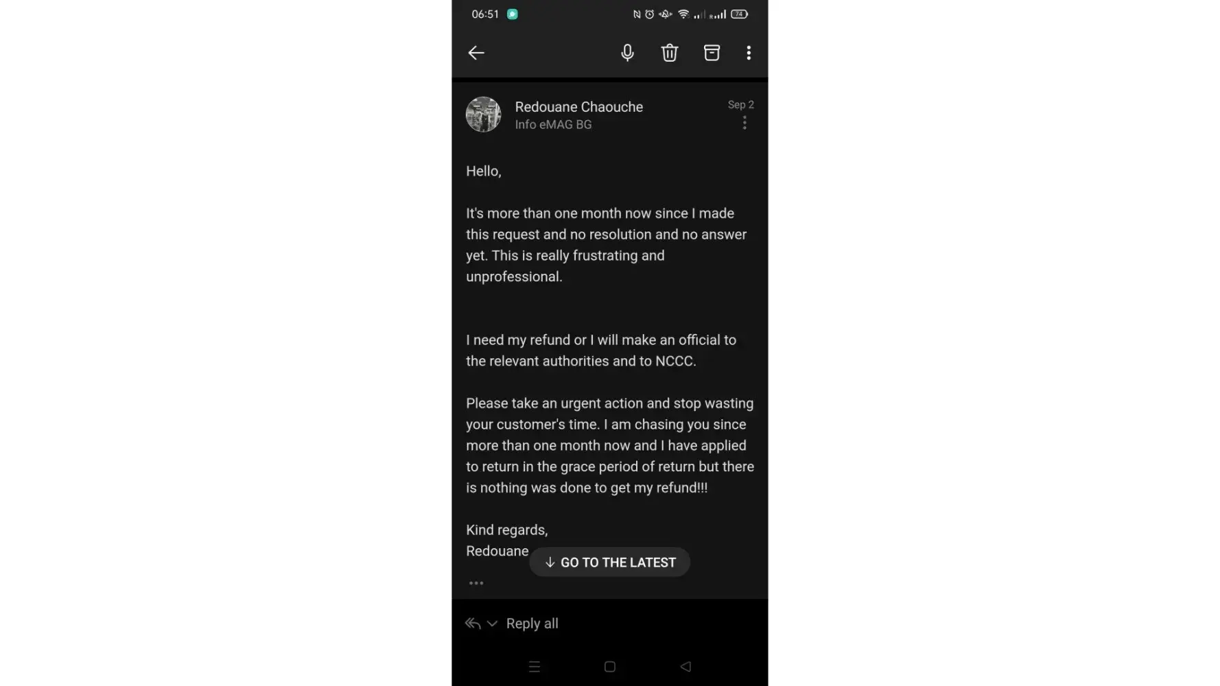 If you don't fix this issue, I will make an official complaint to the European commission and to the national consumer complaint center. I will sue you.