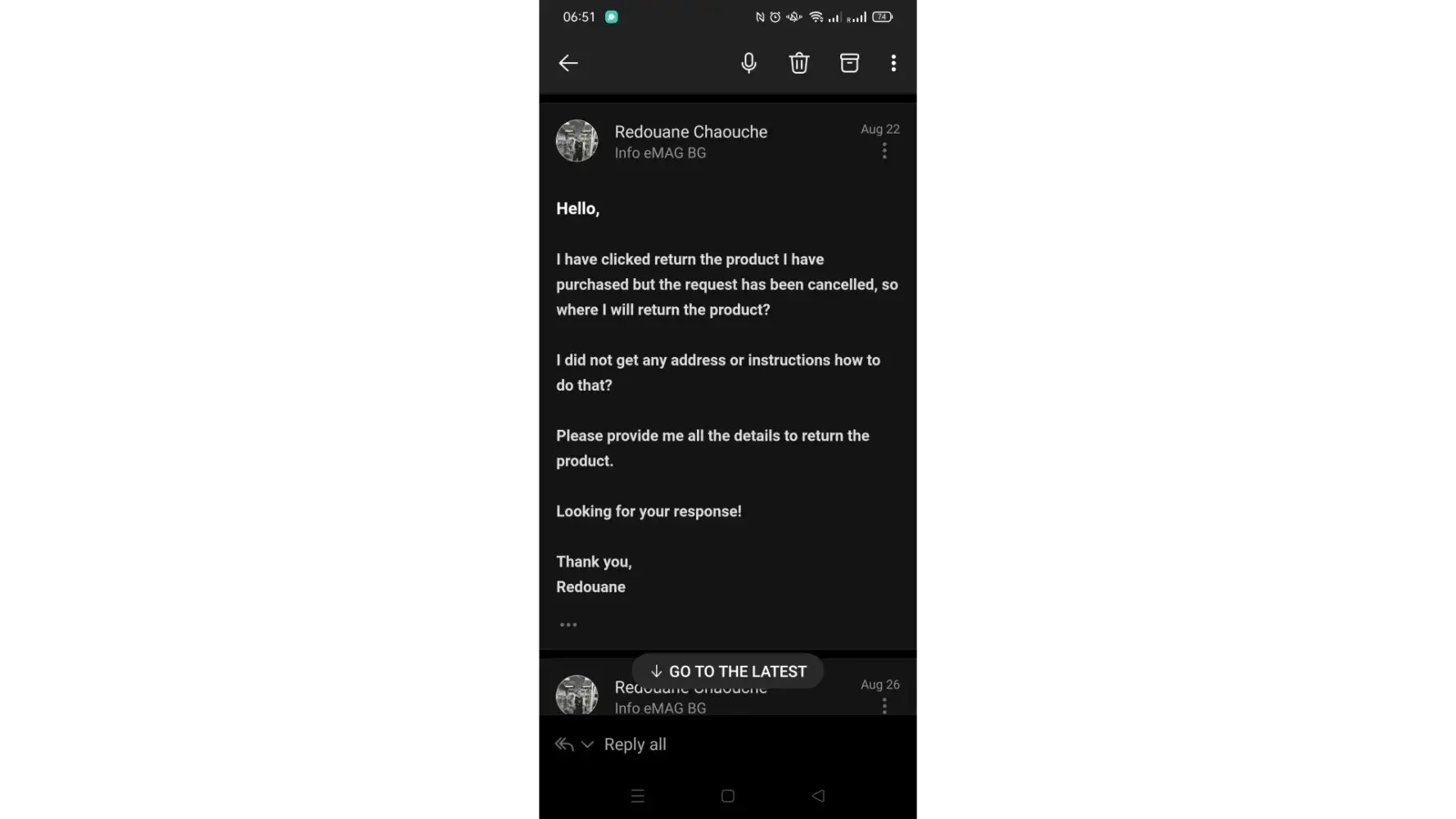 eMag’s earns a 1.0-star rating from 1 reviews and 1 complaints, showing that the majority of customers are dissatisfied with their purchases.