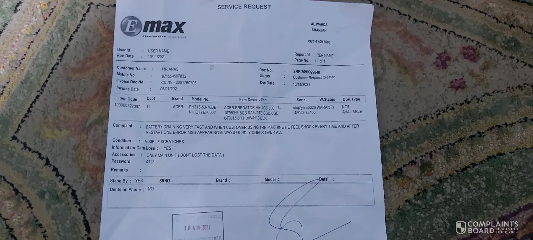 After 10 days later they called me and said your laptop is fixed you may come and collect it. I went there checked my laptop it was covered in dust first of all and second the problem with the software issue still there and battery was draining very quickly and I requested the customer care representative to bring out the manager/supervisor to ask about this matter after 10 minutes the guy name Mr tharoor head of IT department in alwahda store come up on and talk with me politely in initially then changed his tones kinda rude way and blamed on me for mentioning in the service request paper that I mentioned don't loose data so I asked him how come you didn't check the battery before accepting from the accer store. He said we replaced the battery and that's it, it's not our job to look at it. You can take it with or leave it here after 1 month we will fix it and get back to you the laptop he was very rude I tried to talk to him and he is not agreed with me not even listen to me properly. I was Such a shamed and he asked me about my job what was i doing and make fun of it and said you are not a software engineer so you don't know nothing was teasing and mocking me also. Now I have the same problem I had and battery is much worst than before it is draning like open water tape. After getting home I noticed the window button is not working and some app of mine is missing, I had every bad feeling. Overall bad customercare. Now I don't know what to do with my gaming laptop. I sincerely believe emax take necessary action against.
