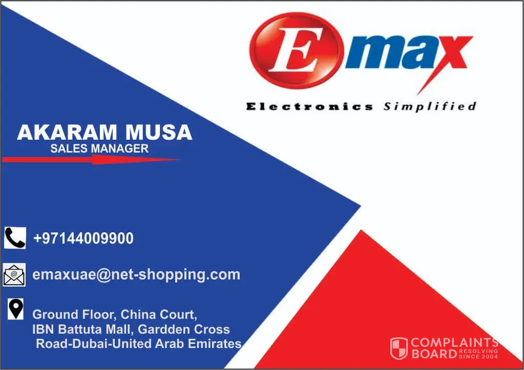 I had escalated to the brand about an impersonator importing stolen/counterfeit goods into India using Emax’s brand name. I had written to Emax many times but they are doing nothing when he is scamming innocent people. He uses their logo, business card, even ships products using their name. They’ve been doing this for over 5 years successfully because Emax doesn’t care. They don’t just extort money from you, but mentally keep harassing you. There’s Akaram Musa, Malah, Abbas who go to any length to extract every penny you have.