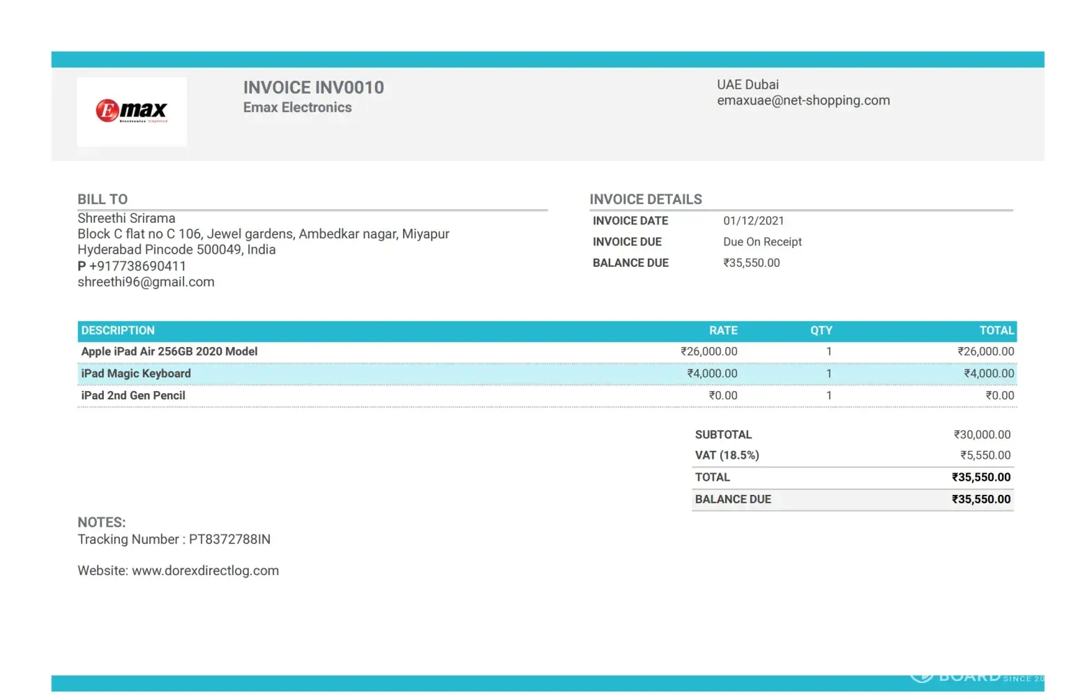 Bought an Iphone 13 pro max 128 Gb seirra blue in Dubai Mall Emax store on 25.12.2021. The price was 4699 AED and I asked the salesman that whether there are any bundle gift included with the above mentioned price. He said that there are no extra gifts with the phone, but the store will coat my Iphone with a thin plastic cover, barely visible and that will be for free. I agreed and paid the amount with me debit card. This guy also said that he will send the invoice through email. It was late in the night and when I reached home, i saw that they have charged me 300AED more for some QUIX GOLD SP CASE, Quix GOLD SC CASE FRIENDLY MOBILE AND QUIX LENS PROTECTOR) phone CASE(iphone 11).