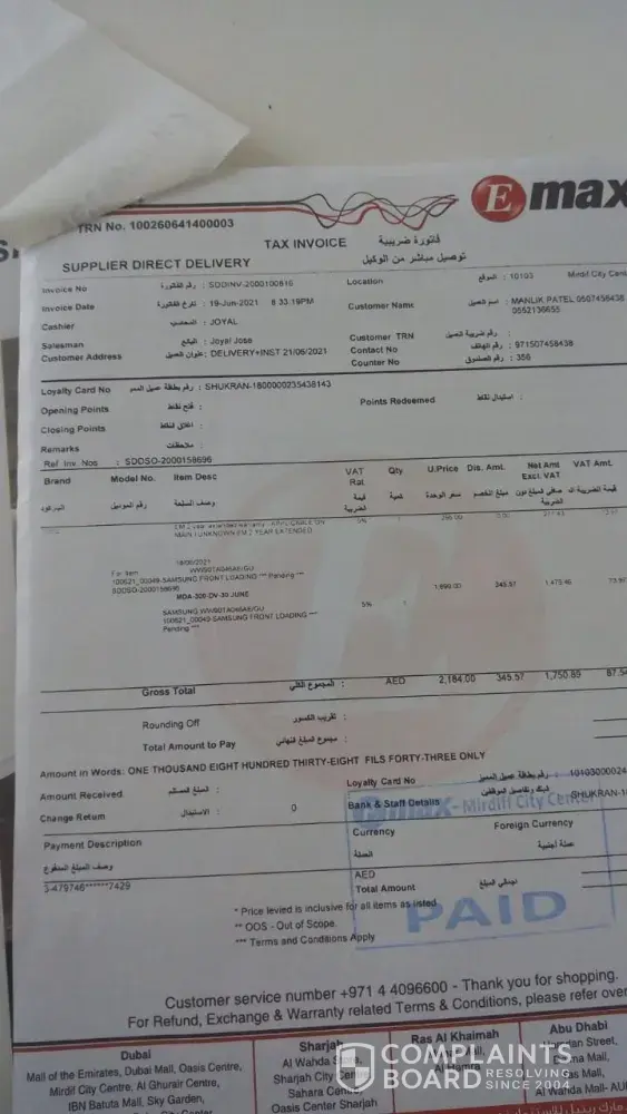 Calling and calling Emax No response, I had to go personally to Emax waited for 40 minutes waiting for the manger MR. Rashed, I went mad and I had to search for him, replied Samsung manger had to visit again, I replied why already conformed and reported its manufacture defaults please take your AC and give me my money or replace the ACs, I suffered a lot.