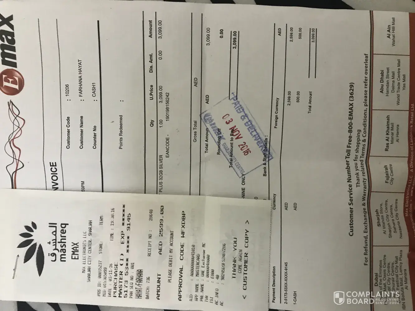 Wrost service and experience I've ever had . i felt like I was scamed and this is a big company . I would never recommend purchasing a product form Emax. i purchased a tablet believing there was a promotion according to the sales representative. the tablet was orginally 400 DH and according to him it was discounted to 1915 at the Emac and mall of emirates in duabi. I waited to purchase the product and he informed that the price was not updated in the system prolly waited 10 mins. then he informed me that the product is 3000 and the tablet without the keyboard is 1915. i asked if they could honour the price he informed me he got back on the phone with the manger and he said ok I paid for my product and when i went home . i noticed the box was already opened and the charger and pen was missing . so i had to go back to the store and ask why there is things missing then he informed me that it's an open product .another employee informed me that its a display product and thats why item was discounted . Not only was i lied to but was made to believe that the product was on sale . wrost customer service and on top all of the is my refund will be transferred into my account after 10 days what type refund takes 10 days riduculous.ive traveled to the USA and any transfer or refund should take only 1 min not 10 days . never buying electronics form Emac and would not recommend it to other travels .