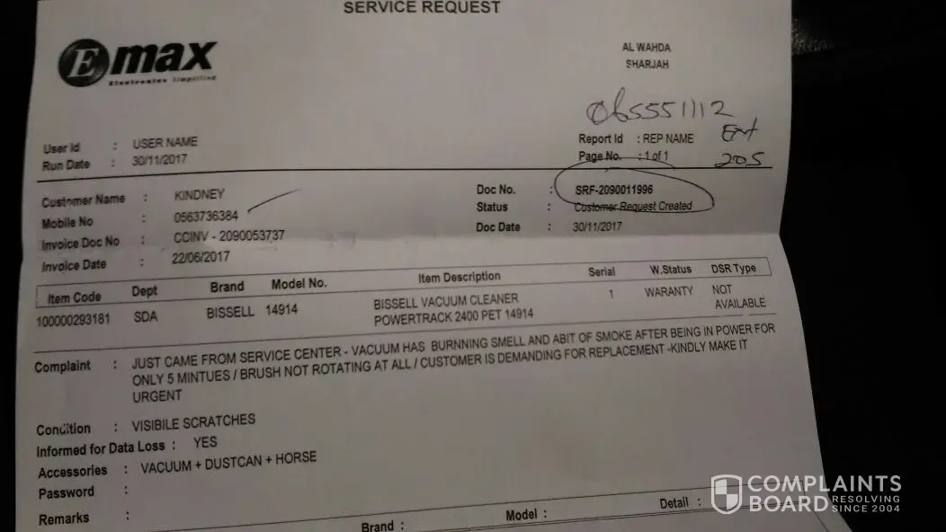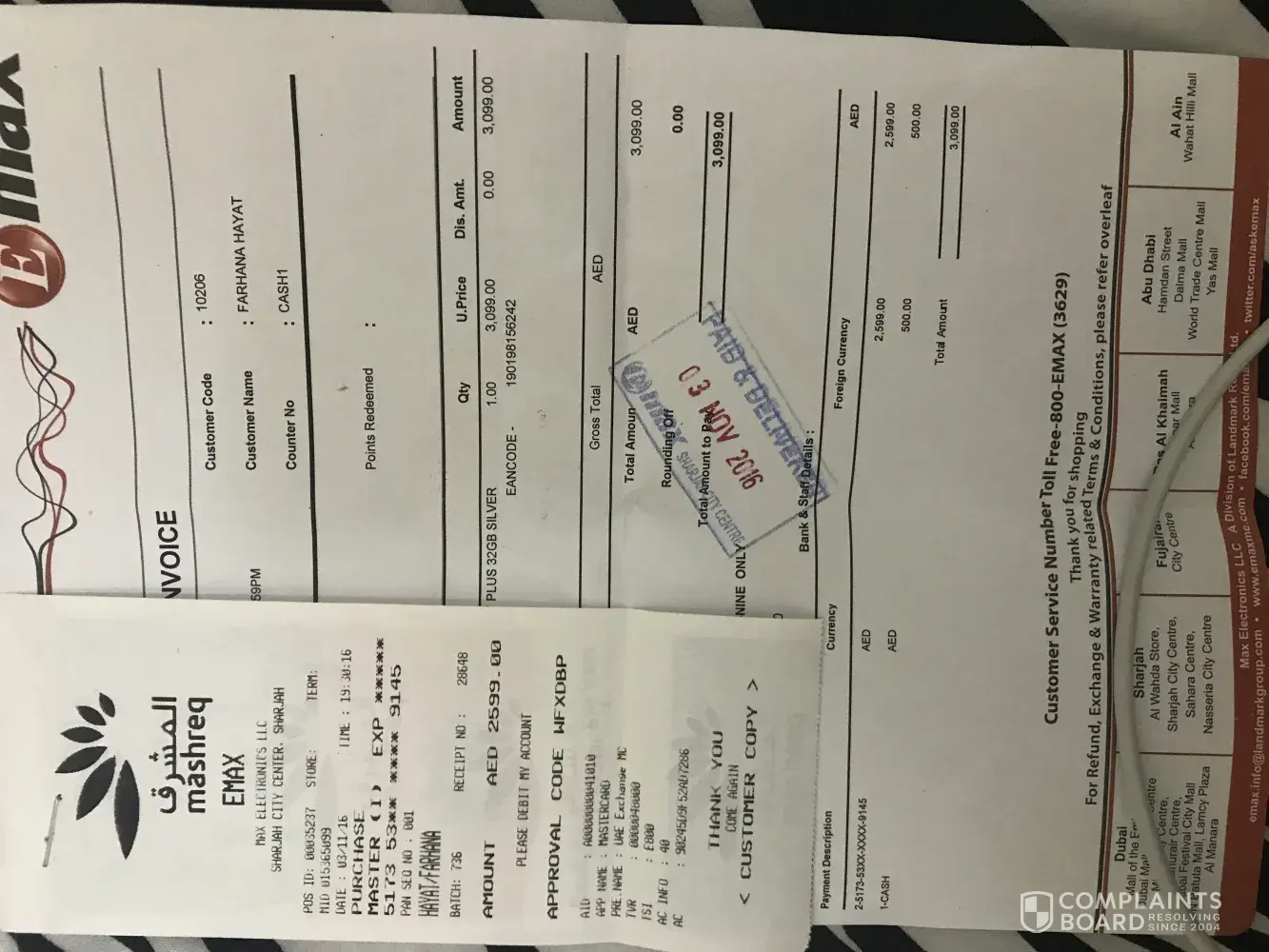 From the Emax, Dubai Mall outlet, they told me the service process should take minimum 15 working days and also they said they would inform us what is the issue of the device within 3 days. So far I have not received any information from them. Due to this I personally called Emax, Dubai Mall outlet today and they said they did not receive any update from the service desk. When I asked them I want to register a complaint they provided me this 8003629 number but this is customer service desk number and from customer service, they said they cannot register any complaint or they will not accept any complaint, this is only customer service. If I want to register a complaint, I shall call the Dubai Mall Emax outlet only.