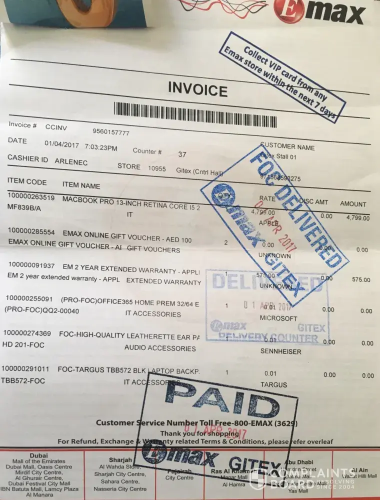 I purchased a MacBook PRO 13-inch Retina core i5 from Emax store during GITEX on 1st April'2017. I had opted for 2 years extended apple care warranty during the purchase. Recently, when I checked Service and Support coverage of my MacBook on Apple website, I was really shocked to know that my macbook's service coverage is only till 31st March'2018(screenshot attached).