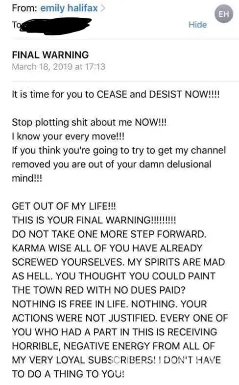 Wow this is ridiculous you people spreading fake lies about Emily halifax should be ashamed of yourselves she amazing women and helps a lot of people, I'v been watching her videos since Jan 2018/2019 yes I'm new follower but she amazing on what she does these bad negativity about Emily is [censored] she such a loving caring person who will help anyone watch her video you will see how amazing this women is I'm stand by Emily halifax 100% she is the real deal.