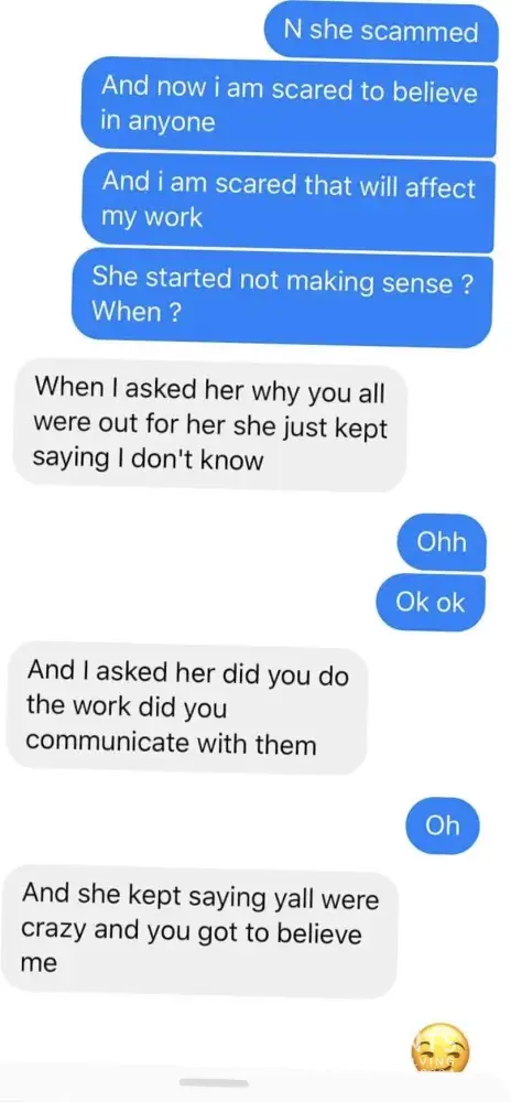 If emily was scammimg she would not be visible to her audience and would be hiding behind fake names and certainly would not be showing her work online.