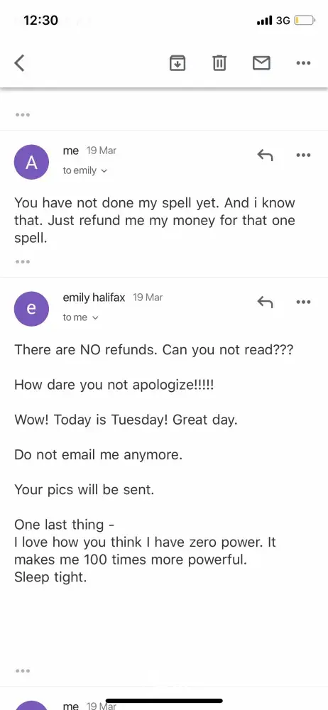 Thank you Emily Halifax for confirming your are a fraud and scam. Thank you to the person who shared this information with us.