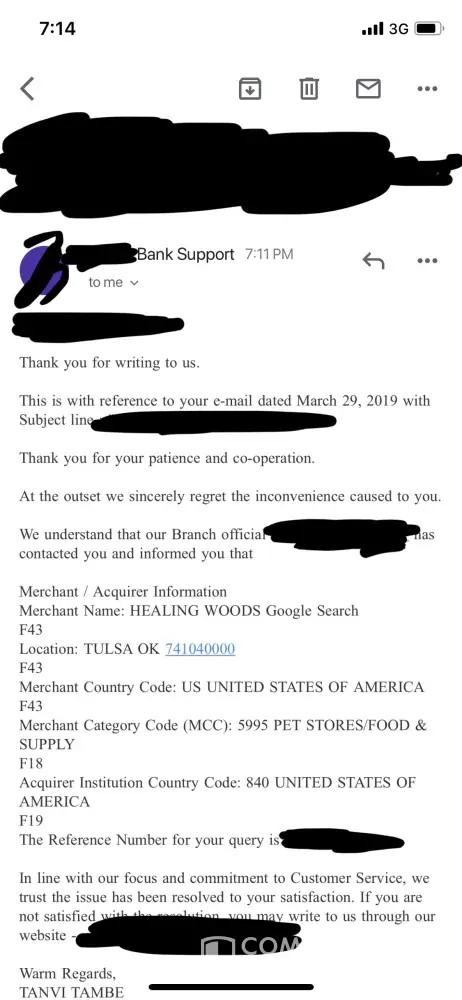The complaint has been investigated and resolved to the customer’s satisfaction.