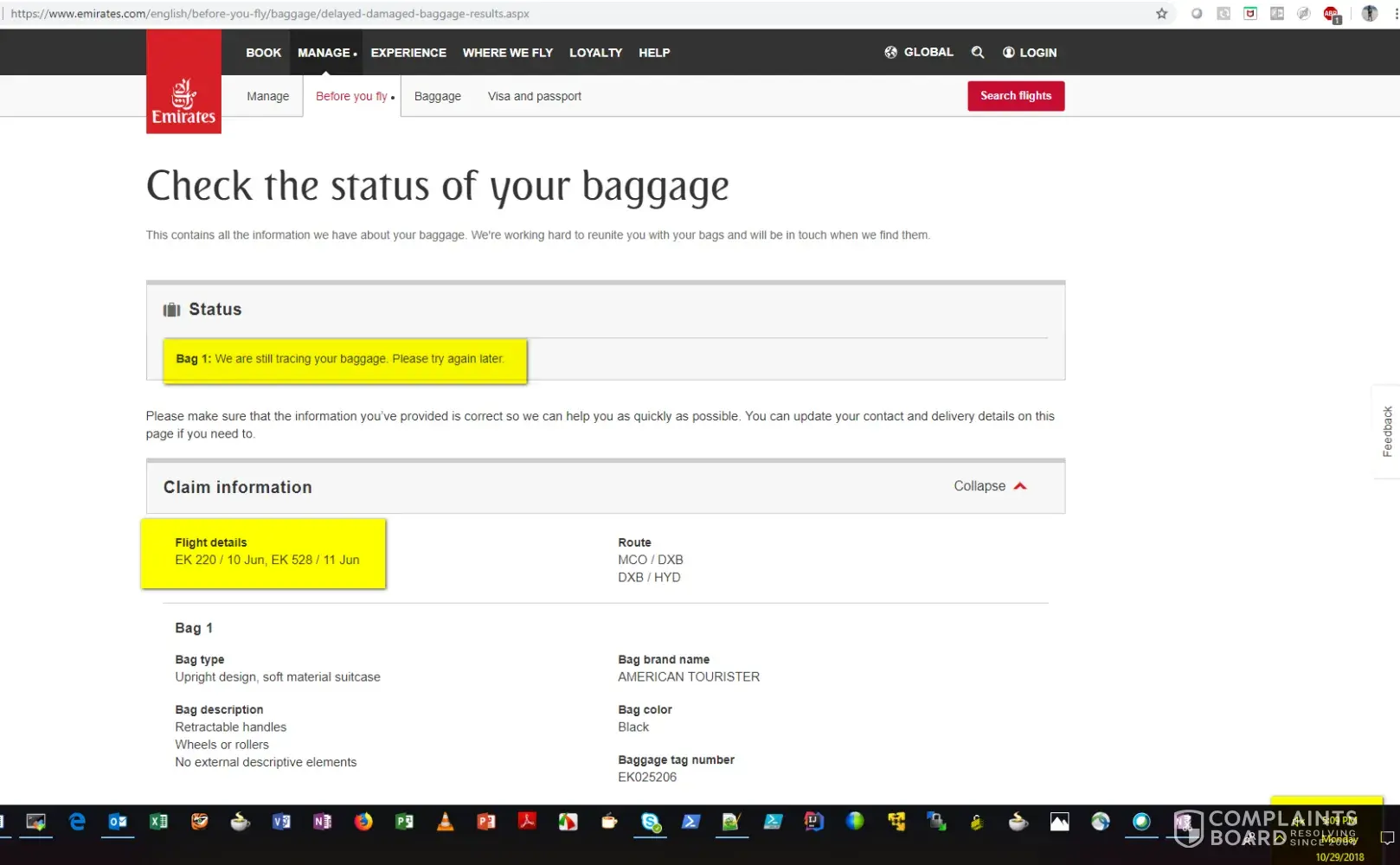 My mom, wife, baby boy travelled from Orlando to Hyderabad on June 10th 2018. Out of 5 checked-In bags, they were able to collect 4. A PIR was filed at Hyderabad airport and it's been 140 but Emirates website status shows Bag is not found yet.