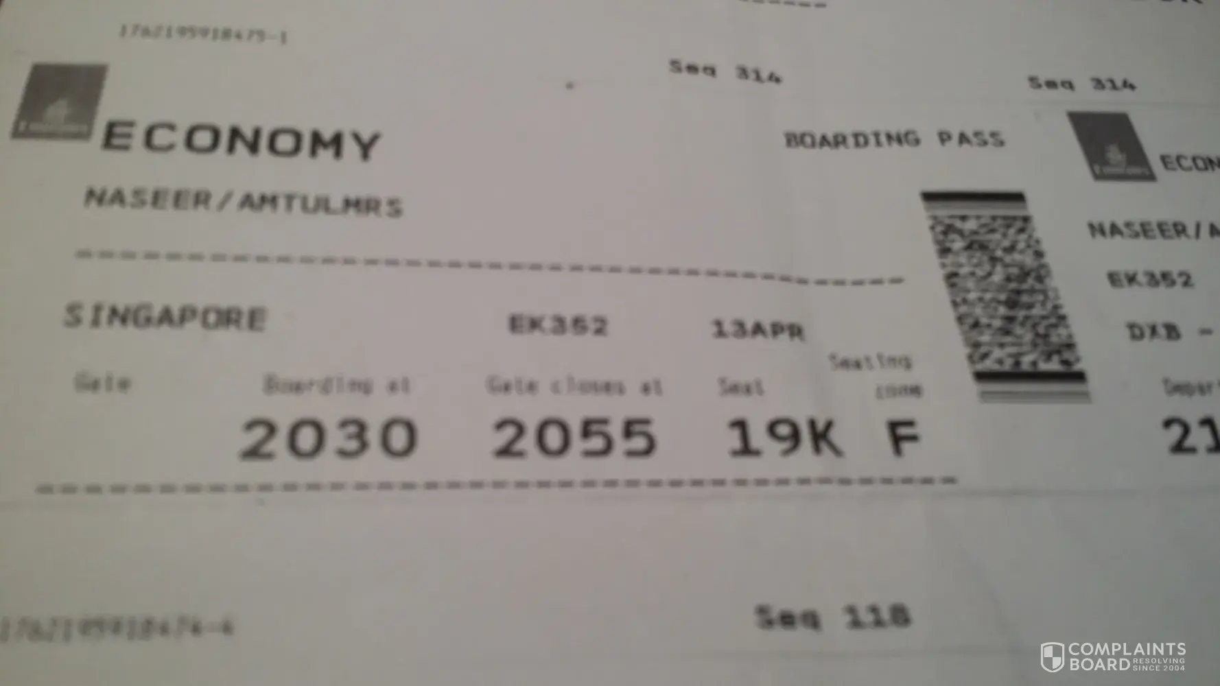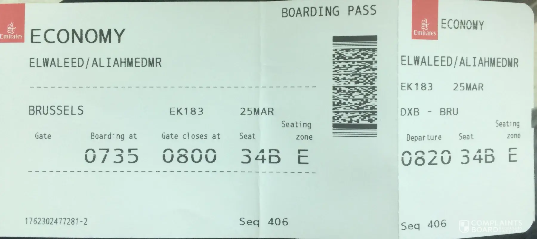 My ticket number was IZPWR6 EK953 departing from Dubai on Wednesday the 8th of Feb at 15.10 along with my family that had the ticket number LCBYWN.