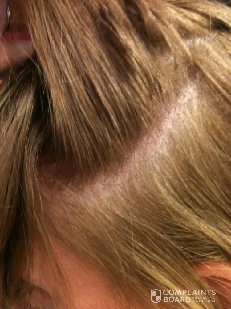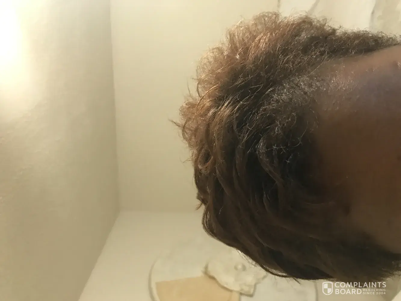 Empire School touched up my roots on 7/15/2010 around 3:20pm. No patch test was done by the student or the (1) teacher who was overseeing several students. The teacher, not the student mixed the product and toner. The roots lifted very fast but came out orange/red. (I did state on several occasions that my hair pulls red but not to the teacher). For an extra charge, Toner was added to deal with the orange/red roots. The toner almost immediately brought the color down to an acceptable light brown. During the initial root lift I noticed the product smelled strong and tingled a bit. The toner appeared to cool things down and my hair was smooth and looked good when I left. My scalp continued to have sensation of burning especially around ears and back of neck. Hair thin and extra un-naturally silky texture to my hair. This burning sensation became unbearable on Monday 7/19/2010 and caused me to call ER at 2:00 am to ask questions to help determine if I needed emergency care. I was unable to see red but by late morning my head was on fire and red. I went to another salon who took the photo's below and applied protein conditioner. I also had to cut /layer my hair about 2.5 inches so as to avoid further strain on scalp by pulling it back into a pony tail. I am not sure if I am going to lose my hair. I only hope that it will grow back. I understand this is a school and that you sign waivers but I do think Empire should take some responsibility as they are not doing patch testing and have really burned me. I am told the product used was Goldwell - 20 volume perm and the toner was a semi perm by Goldwell. Something went terribly wrong. Agonizing pain. I hope it goes away soon!
