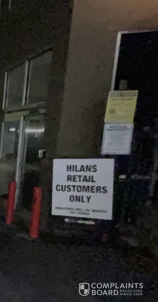 After having dinner at a restaurant at North Highland Ave. Had the surprise of my car booted in front of a large plate "Hilans retail customers only" and confirming that the parking lot was allowed for restaurant customers inside the restaurant.