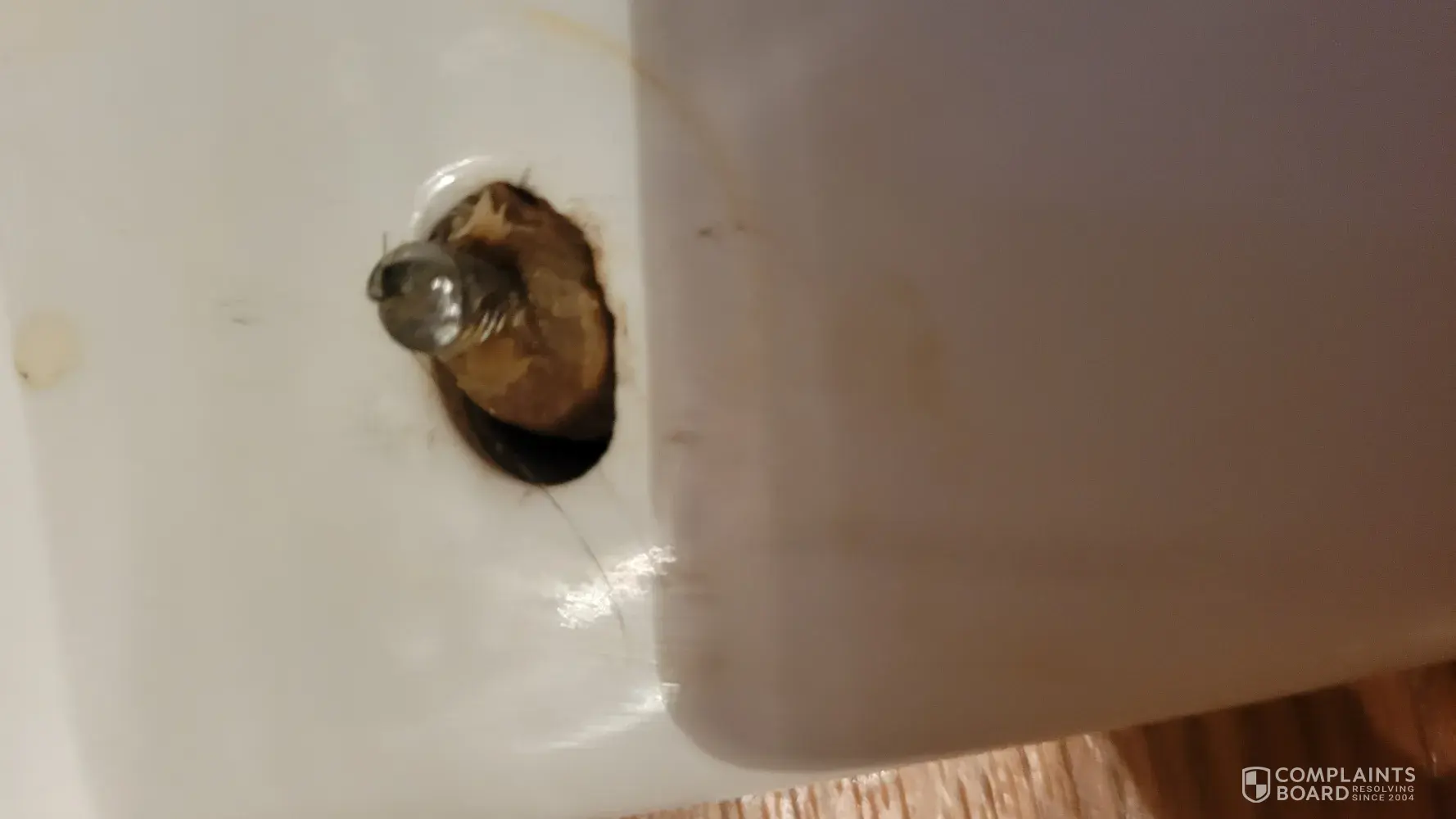 Installers replaced bathroom flooring which required replacing the toilet wax seal. There is now water seapage under the toilet and the floor bolts cannot be tightened because wax has come up thru the screws anchoring the floor. Took pictures to Home Depot and they said it was probably a broken wax seal and the hardware used to anchor the toilet base to the floor was not the standard hardware that should be used for this purpose.