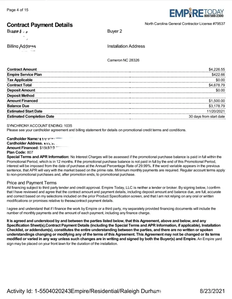 Empire Today Sneaky warranty