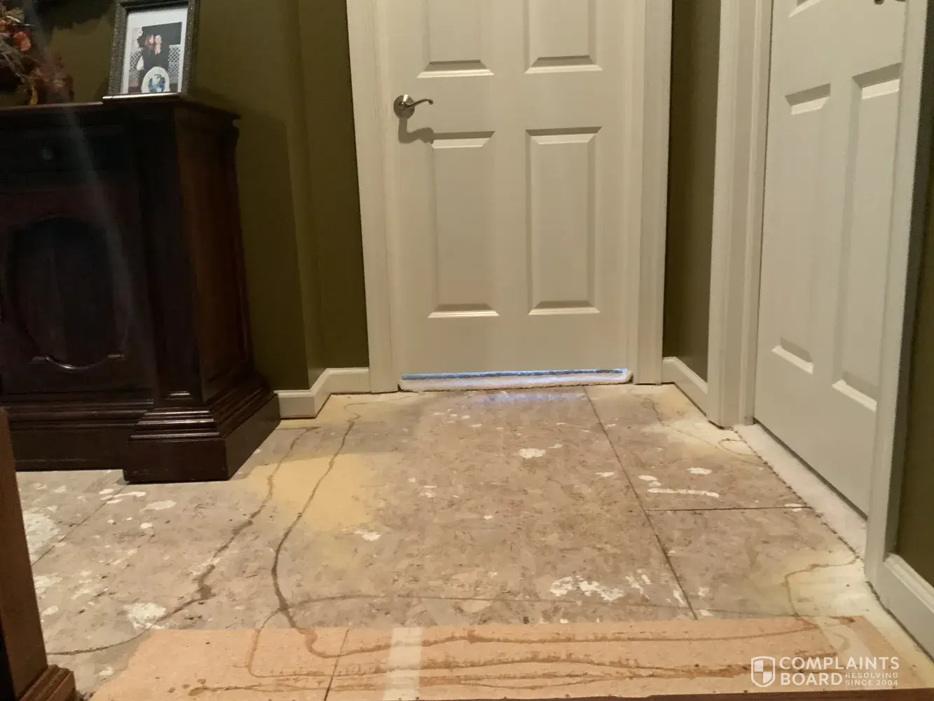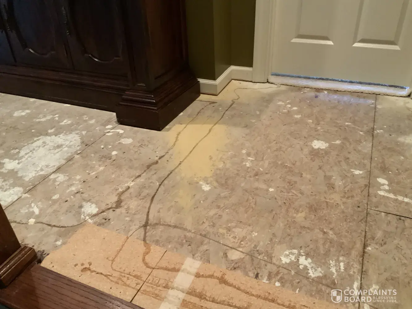 Had 1 area of flooring warped (other 4 pieces fine) and 2 area had depressions and made clicking noises when stepped on. Inspector came (1 day late) put moisture meter on floors and stated we had moisture on floors .I went online and looked up directions for the exact brand and model number and it stated the meter was calibrated for 3/4 inch measurements. My floors are 3/8 inch thick. It went on to state an inaccurate reading would occur if not used at 3/4 inch depth. They refuse to send another inspector out and told me to contact my homeowners insurance to cover the repairs. (which is incorrect homeowners insurance only covers broken water pipes for this)