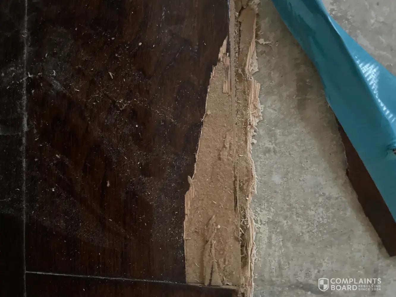 A couple years ago, I purchased engineered hardwood, Cambridge Cocoa. What I received was a pressboard with wood fibers. I found out when we pulled up our flooring recently and had it examined because it did not look like an engineered hardwood. It looked like cardboard paper pieces with wood sticker on top... it is the best way I can describe from examining the piece we cut out to analyze.