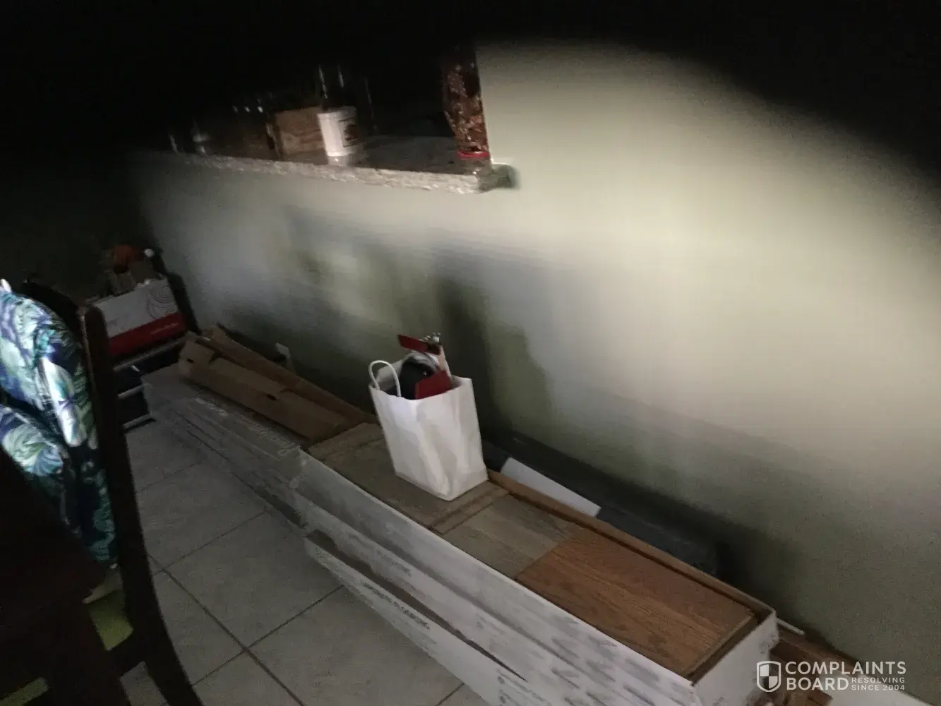 On Wednesday both crews arrived around 8:45am, the laminate installer brought our materials in and set up a staging area in my living room telling us the materials couldn't be staged or stored in my garage due the heat.