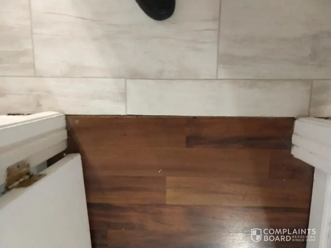 The floor was just put down and we noticed a tear in the vinyl. I called several times and it took forever to get a response. they finally came to the house after making me lose another days pay they were suppose to show up between 3 and 4 and got there at 8pm with his family in the car.