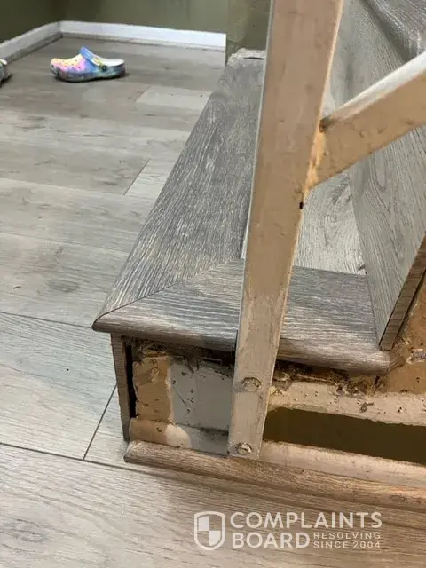 They came out in April of 2022 and did floors and stairs; the stairs were torn up and the sides torn apart due to the removal of the carpet. They were supposed to put molding on the out of the stairs, they guy said that he would come back and do it, but never showed up. They have scheduled 3 times with me to repair this and never showed up. I need to have this repaired or given some of my money back.