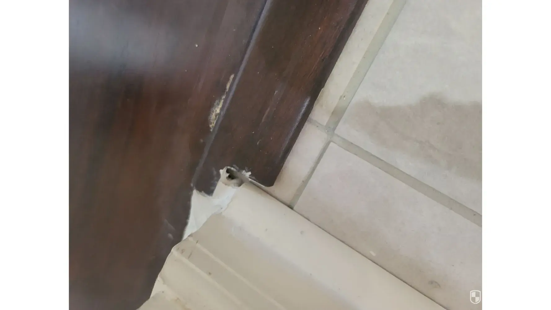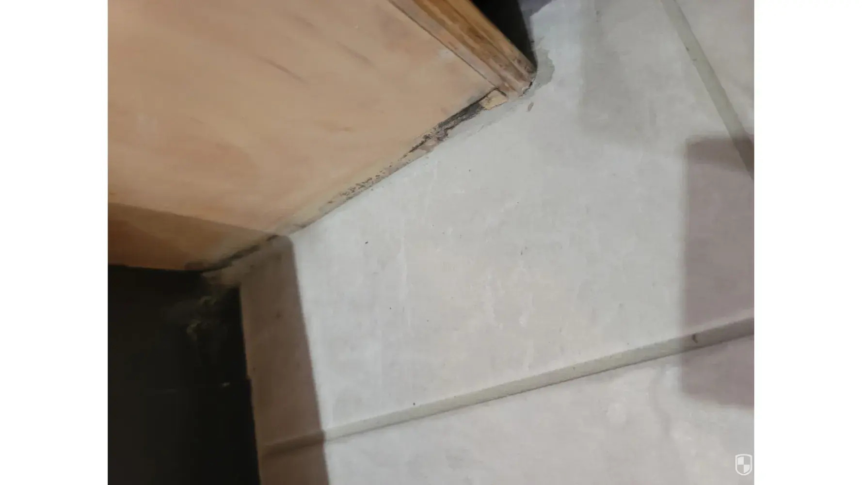 7. Installer was shown the gaps between the laminate and tile, the thresholds LIFTING, gaps under the base trim from the kitchen floor, crumbling grout, etc. It was blamed on the laminate flooring installation. (?)