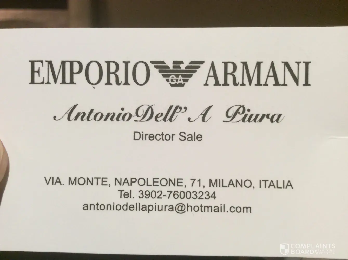 He seems to be calling himself Tony Dell Avallone. His email is very un-Armani tonydellavalone@hotmail.com I am sure a Director of Armani would have a company email wouldn't you!
