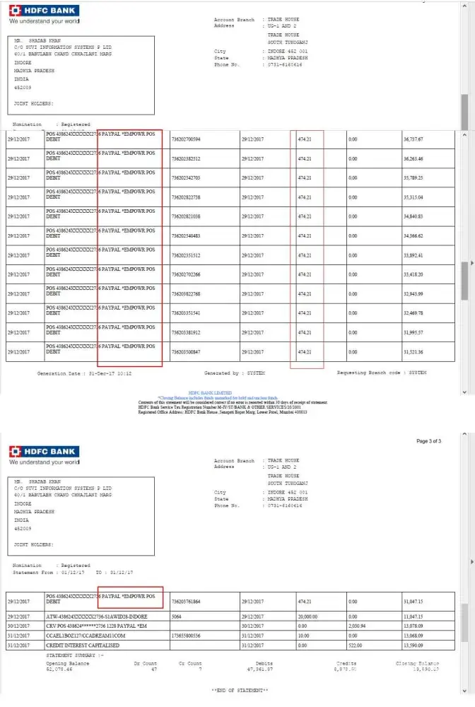 Subject : Complaint against Empowr- refund my amount 18 transition done in Paypal or HDFC bank, attached Screen