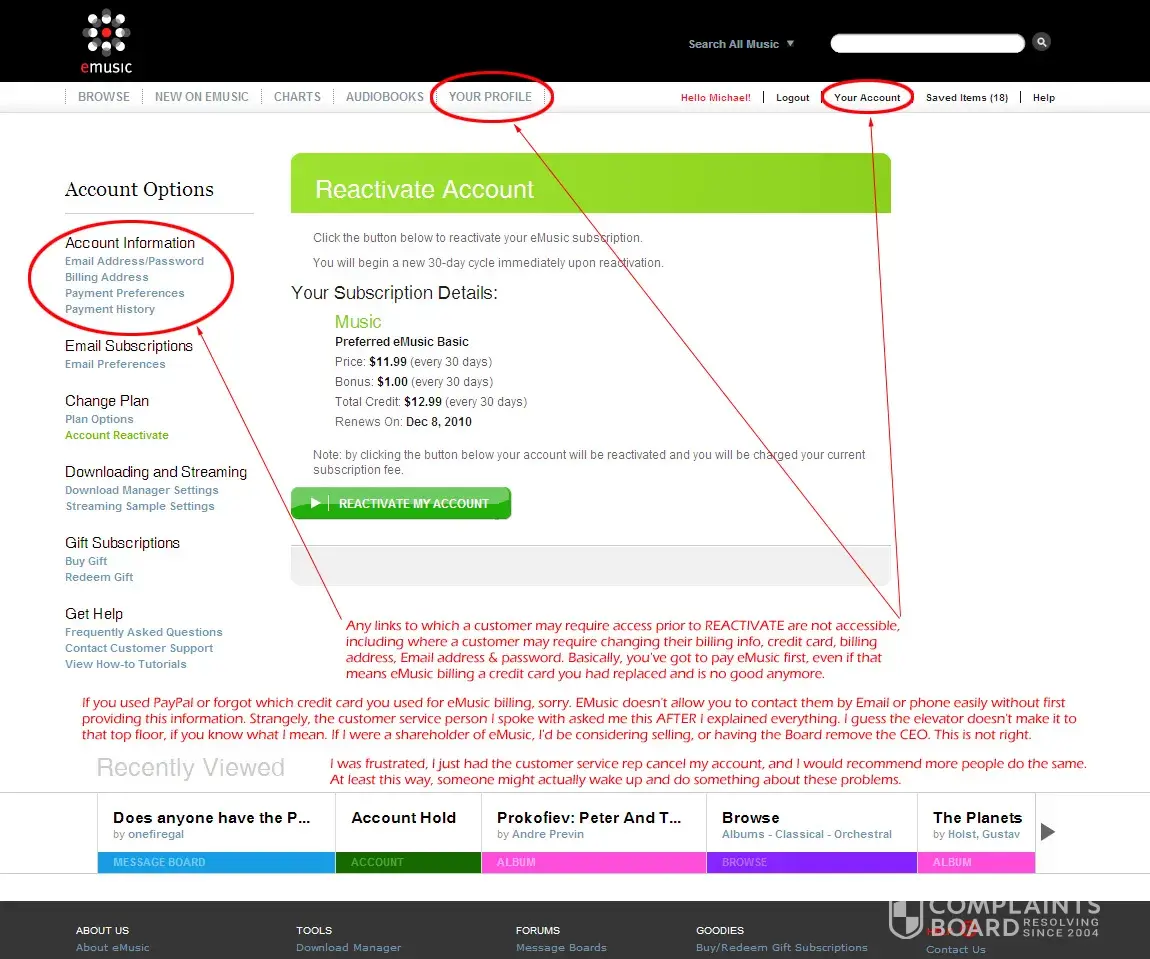 eMusic.com complaints: history and resolution overview