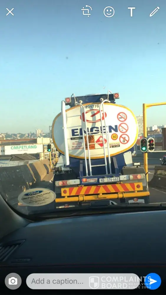 Please see attached picture of Engen Road Tanker and number plate.